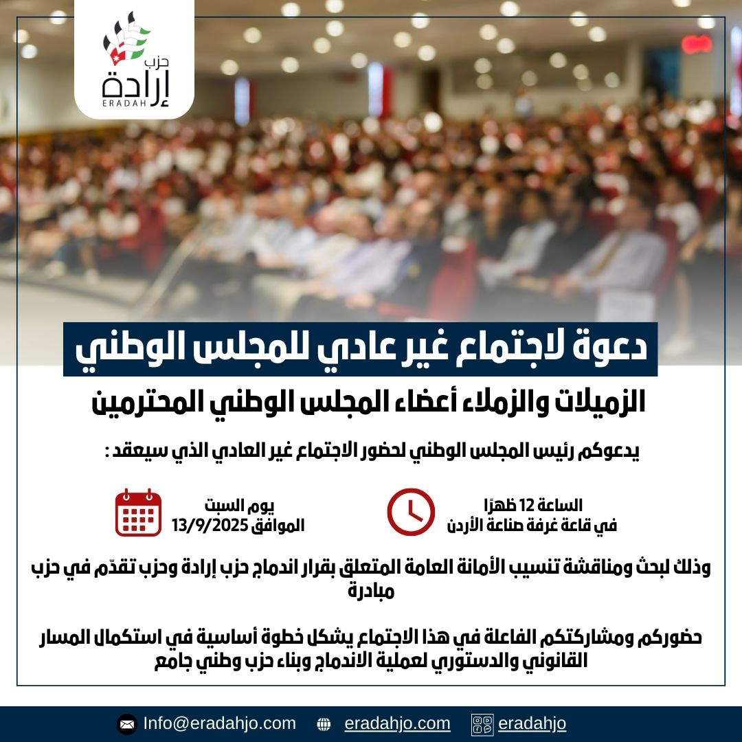 ومن جانبه، أكد رئيس المجلس المركزي الدكتور فوزي الحموري أن هذه الخطوة تأتي ترسيخًا للعمل الحزبي المؤسسي وتوحيدًا للجهود بما يخدم المصلحة الوطنية، ويعكس التزام الحزب بالتوجيهات الملكية السامية في تحديث المنظومة السياسية وتعزيز المشاركة الديمقراطية، مشيرًا إلى أن الحزب الجديد سيقدّم برامج عملية وواضحة تخدم المواطنين، وتدعم الاستقرار المؤسسي وتطوير الأداء الحزبي.