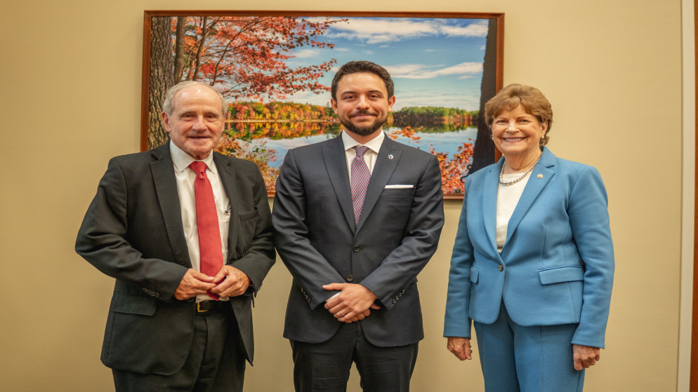 كما التقى سموه بالسيناتور كريس فان هولين، عضو لجنتي المخصصات والعلاقات الخارجية في مجلس الشيوخ، حيث أكد التزام الأردن بالاستمرار في جهود التحديث والإصلاح، والعمل على تحقيق التهدئة في المنطقة. وثمّن سمو ولي العهد مواقف السيناتور فان هولين الداعمة لوقف الحرب على غزة ودعواته المستمرة لتحقيق ذلك.
