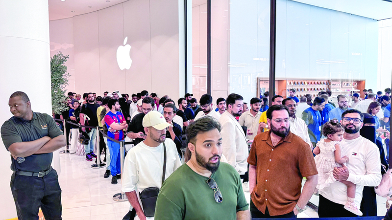 طوابير انتظار أمام متاجر «أبل» في دبي لاستلام آي فون 17