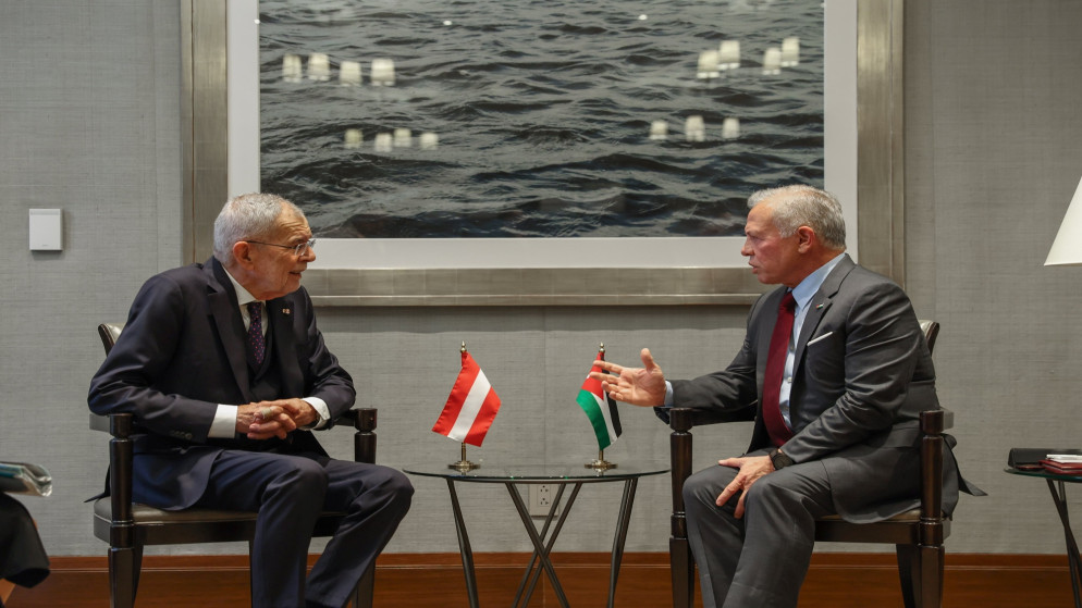 أخبار هنا العالم - نيويورك – التقى جلالة الملك عبدالله الثاني، يوم الأحد، رئيس جمهورية النمسا ألكسندر فان دير بيلين، وذلك على هامش اجتماعات الجمعية العامة للأمم المتحدة في نيويورك، وبحضور سمو الأمير الحسين بن عبدالله الثاني، ولي العهد.