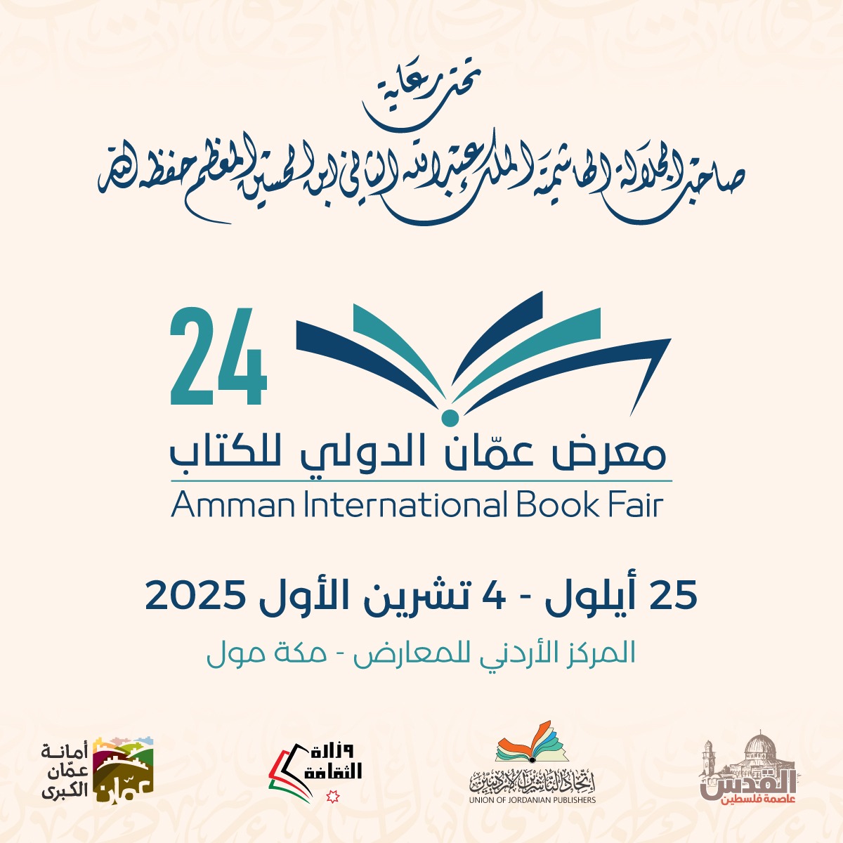 عمان - تحت رعاية جلالة الملك عبد الله الثاني حفظه الله، تنطلق الخميس المقبل 25 أيلول 2025، فعاليات الدورة (24) لمعرض عمان الدولي للكتاب الذي ينظمه اتحاد الناشرين الأردنيين.