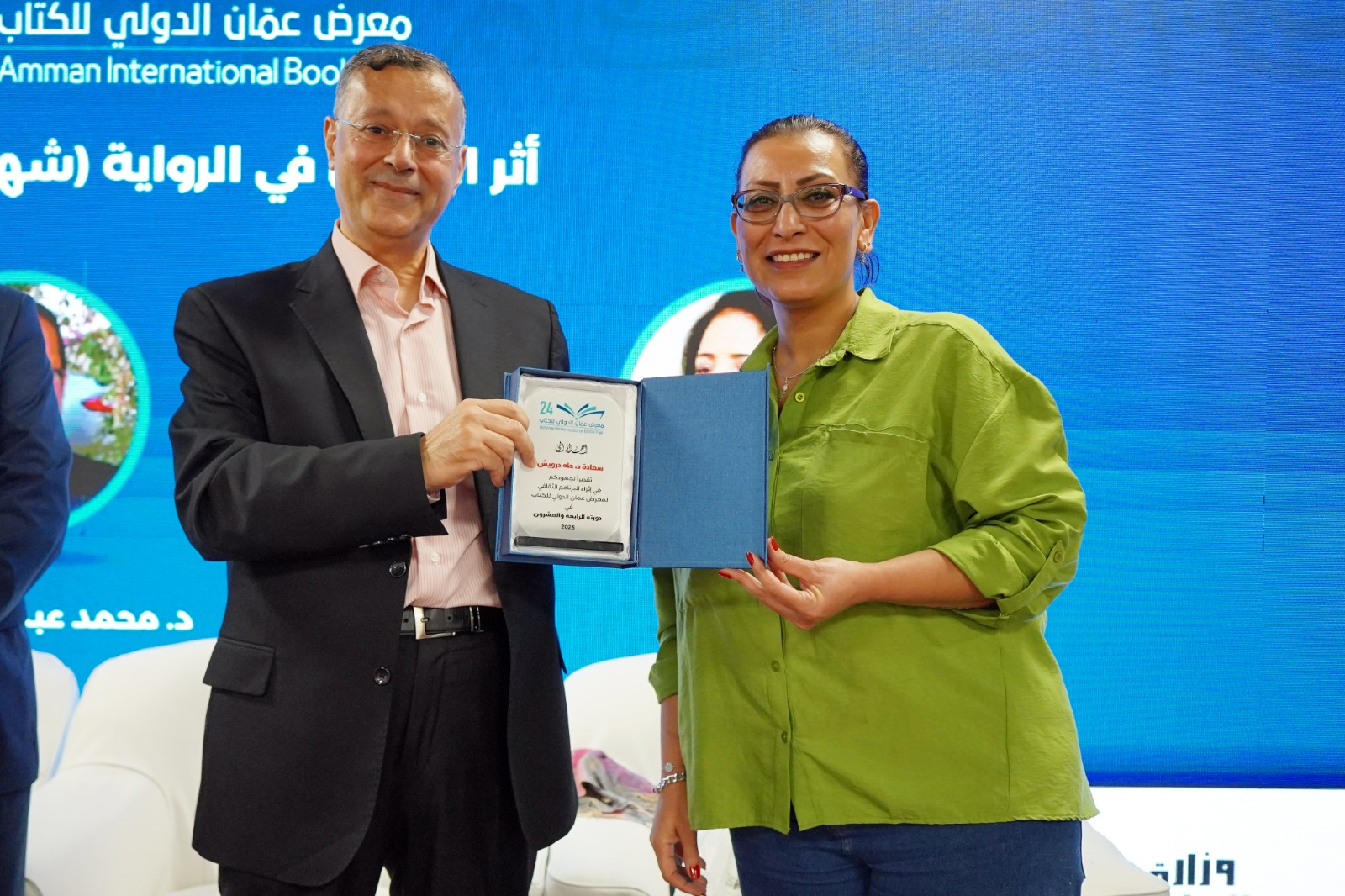 وفي ختام الندوة، شكر الدكتور درويش الحضور، وإدارة معرض عمّان الدولي للكتاب واللجنة الثقافية على التنظيم، وتم تكريم المشاركين في الندوة بدرع معرض عمان الدولي للكتاب 2025.