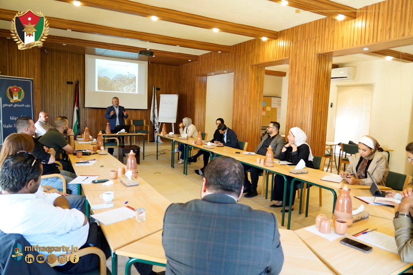 كما تم تقديم وشرح استراتيجية الحزب فيما يتعلق في الحفاظ على البيئة من خلال رئيس لجنة البيئة في مجلس النواب الدكتور حمزة الحوامدة عضو المكتب السياسي في الحزب .